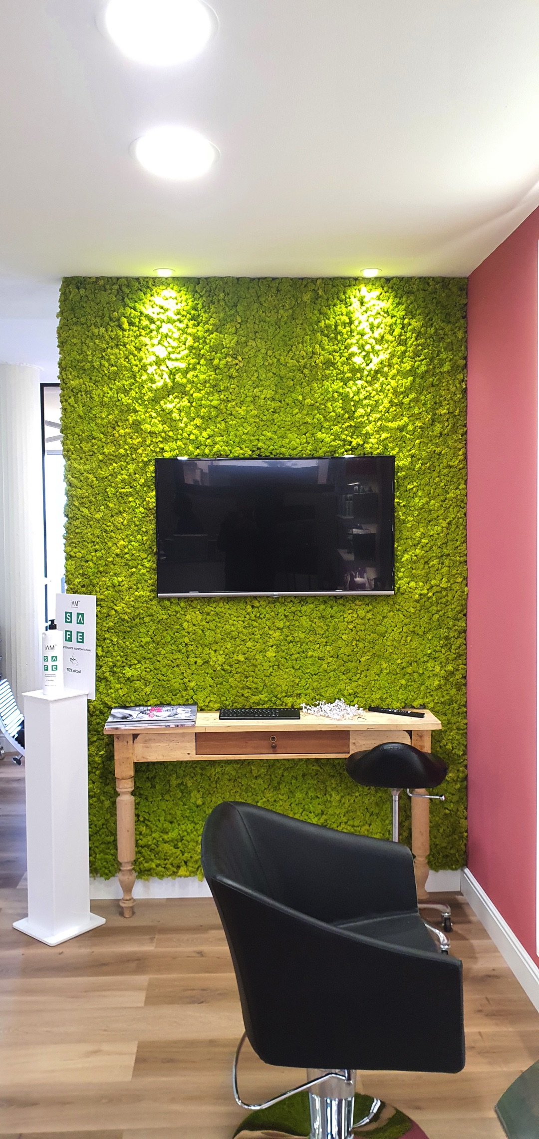 Dank ihrer wichtigen Eigenschaften ist die Flechtenwand in der Lage, den typischen Lärm in Friseursalons zu reduzieren.
